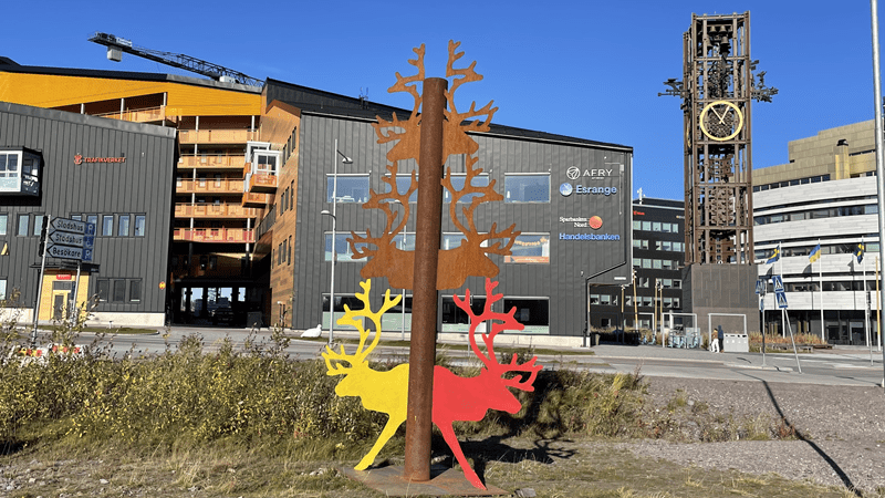 Weiter geht es dann Richtung neuem Zentrum. Allerdings kommen wir nicht weit, die Straßenführung führt uns zum „Malmvägen“. Dieser führt an den neuen Bauten vorbei, unter anderem am Uhrenturm, Kirunas Wahrzeichen. Etwas abseits auf der anderen Seite des „Malmvägen“ stellen wir Hilde ab. Vier kostenlose Parklätze für Wohnmobile zwischen 10:00 und 00:00 Uhr sind ausgeschildert. Gut für uns. Zwischen dem „Aurora Kultur & Kongress“ und dem „Scandic Kiruna“ laufen wir über den „Torggatan“ und sehen uns die „Innenstadt“ an. Der Wind bläst hier stark und bringt auch eine Menge Staub mit.