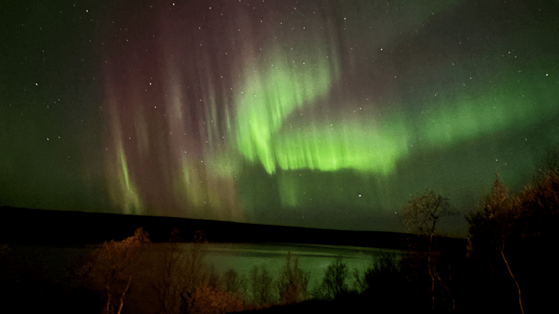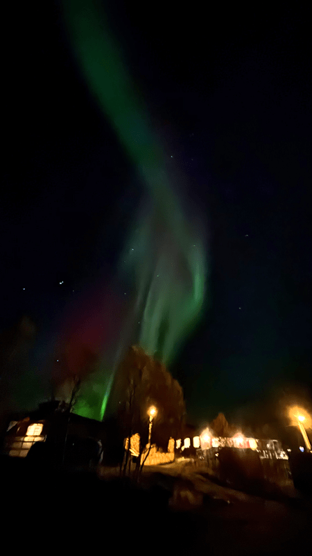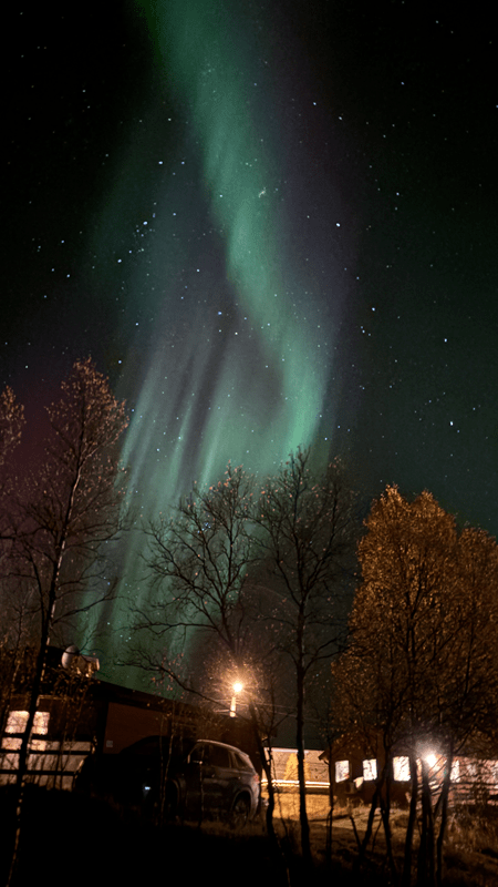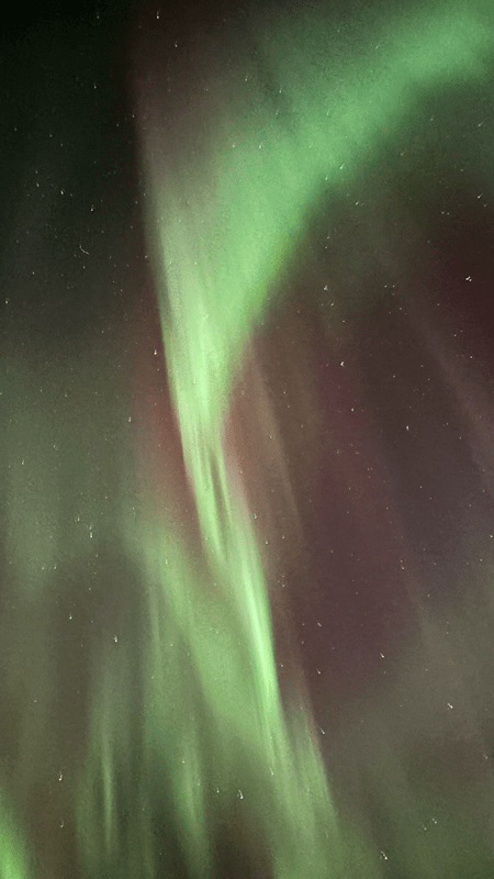 Der Himmel bietet nur wenige Schleierwolken, doch laut Wetter App soll es sich zuziehen. So richtig können wir uns das nicht vorstellen, da die Wolken mit jedem Blick zum Himmel immer wieder weniger werden. Ich nehme mir vor, mein Projekt „Galaxy am nächtlichen Himmel“ in Angriff zu nehmen. Mit den wenigen Wolken am Himmel bildet das vielleicht einen schönen Kontrast zu den sichtbaren Sternen und der sich über uns hinwegbewegenden Milchstraße. Auch Chrissi baut Ihre Stative auf, um das eine oder andere Nachtfoto zu machen. Mittlerweile ist es stockdunkel. Und wie zum Hohn bilden sich grüne Lichtschleier in genau der entgegengesetzten Richtung vom Wasser. Also quasi hinter uns. Chrissi macht ein säuerliches Gesicht, da in dieser Richtung die Scheinwerfer des Camps blenden. Ich denke noch kurz, dass ich Glück habe und beginne mit dem Fotografieren. Das Glück hält nur wenige Sekunden und der Himmel fängt an zu leuchten. Die Galaxy ist nicht mehr zu sehen, nur noch lichtstarke Sterne sind auszumachen. Dafür ist das folgende Spektakel unglaublich. Wir fotografieren was das Zeug hält. Viele Fotos, sehr viele Fotos 😊 werden gemacht. Irgendwann gebe ich auf und ziehe mich in Hilde zurück, um das Spektakel am Skyroof zu verfolgen. Einige Zeit später ist Chrissi fertig und kommt wieder rein – durchgefroren, aber mit einem zufriedenen Gesicht.