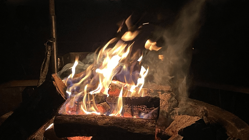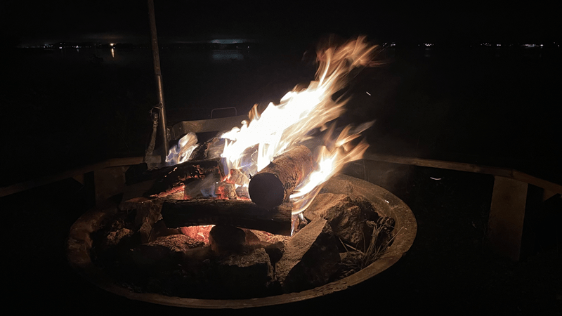 Spät ist das Feuer heruntergebrannt und wir ziehen uns in Hilde zurück.