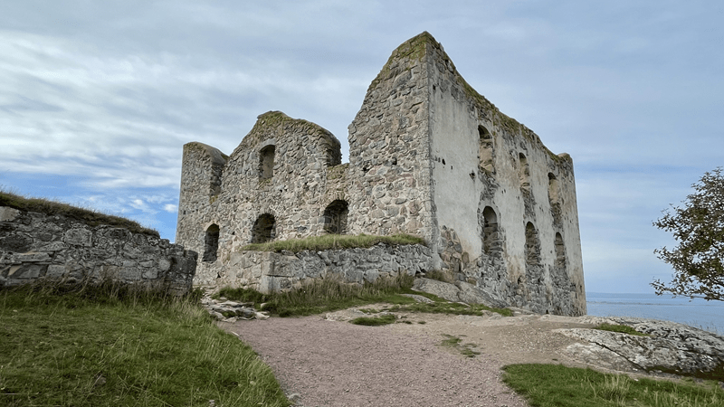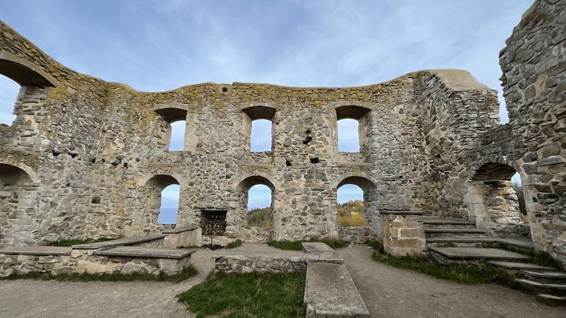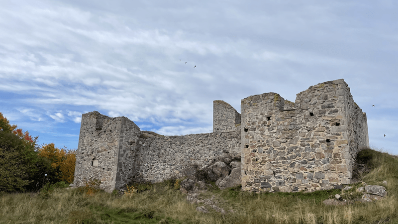 Mittags sind wir dann durch mit allem und wir verabschieden uns. Als nächstes fahren wir zur Brahehus Ruine. Die hatten wir schon zum Beginn unserer Reise von der Straße aus gesehen. Weit ist es nicht, kaum 30 Minuten müssen wir fahren. Schnell bringt uns die E4 hin, direkt daneben liegt die Ruine. Davon ausgehend, dass man davor parken kann, nehmen wir die falsche Abfahrt und fahren daran vorbei. Dabei ist zu sehen, dass der Parkplatz auf der einen Seite der E4 benutzt werden muss, um durch einen Fußgängertunnel auf die andere Seite der E4 zu kommen. Nur über diesen Weg ist die Ruine erreichbar. Leicht grummelnd fahre ich bis zur nächsten Abfahrt. Von der E4 runter, unten durch und wieder rauf auf die Autobahn. Glücklicherweise dauert das ganze Manöver nicht mal zehn Minuten. Zum zweiten Mal fahren wir an der Ruine runter, nur geht es direkt zum Parkplatz. Hinten ans Eck stellen wir Hilde ab. Wieder schnappen wir unser Equipment und machen uns auf den Weg. Die Drohne lasse ich zurück, hier darf ich nicht fliegen. Zu viele Menschen und die Autobahn verhindern ein Aufsteigen.