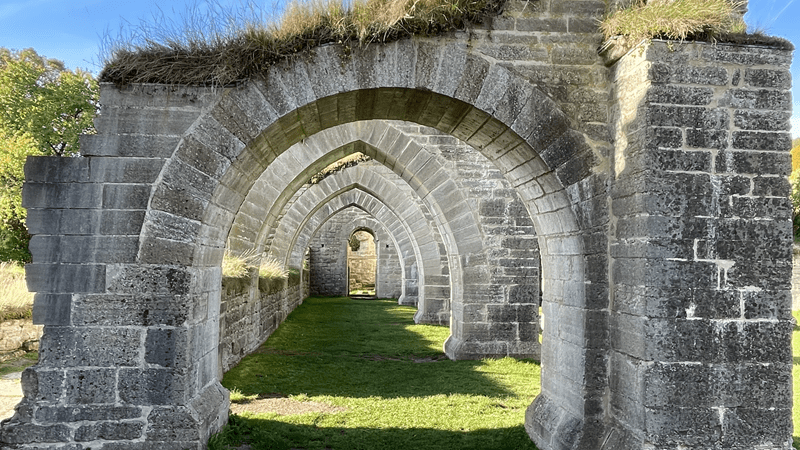 Am Kloster wird Summsel in die Luft gelassen. Natürlich unter Berücksichtigung der örtlichen Richtlinien. Chrissi macht derweil Fotos und erkundet das Objekt auf ihre Art. Die Zeit vergeht und es kommen weitere Besucher. Ich hold die Drohne wieder ein, sie hat aber schon ihren Job gemacht. Die Schatten der Ruine zeichnen sich auf der gepflegten Fläche ab und die Fundamente der ehemaligen Mauern sind gut erhalten worden. Alles wirkt friedlich. Der kleine Teich nebenan liegt still da und der die Bäume rauschen leise vor sich hin.